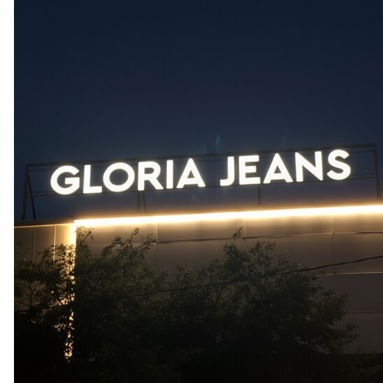 Популярный выбор для премиальных брендов. Буквы с внутренней подсветкой хорошо читаются даже днем. Чаще всего используются на фасадах магазинов, офисных зданий и торговых центров.