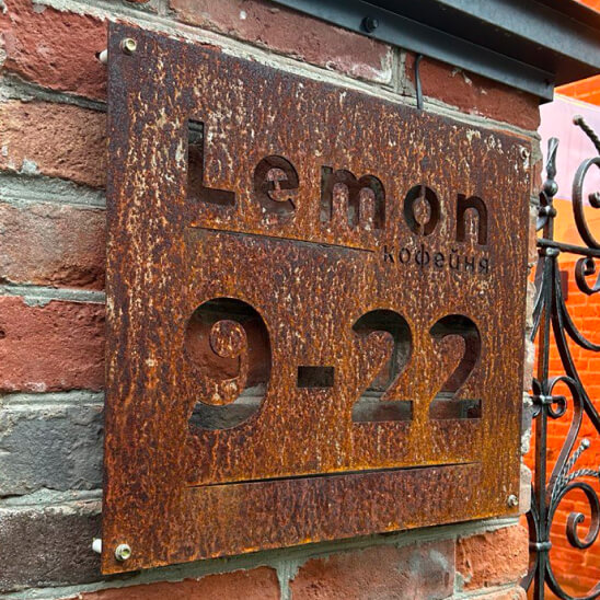Создают уютную и натуральную атмосферу, подходят для кафе, частных домов и интерьеров. Требуют защиты от влаги, но выглядят стильно и экологично. Часто используются для табличек с названиями, welcome-знаков и декора.