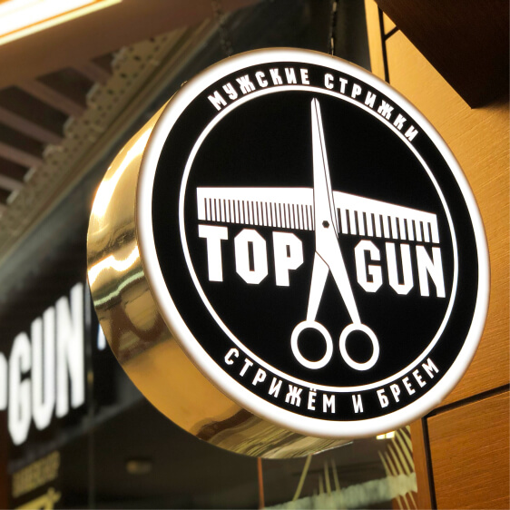 Дополнение для любой вывески. Иногда являются единственным подходящим вариантом из-за отсутствия свободного места на фасаде. Обычно панель-кронштейн имеет размер диаметром от 50 до 70 см. Конструкция дает возможность просматривать рекламное поле с двух сторон, так как крепится перпендикулярно дороге. Так компания привлекает внимание людей, которые идут вдоль улицы.