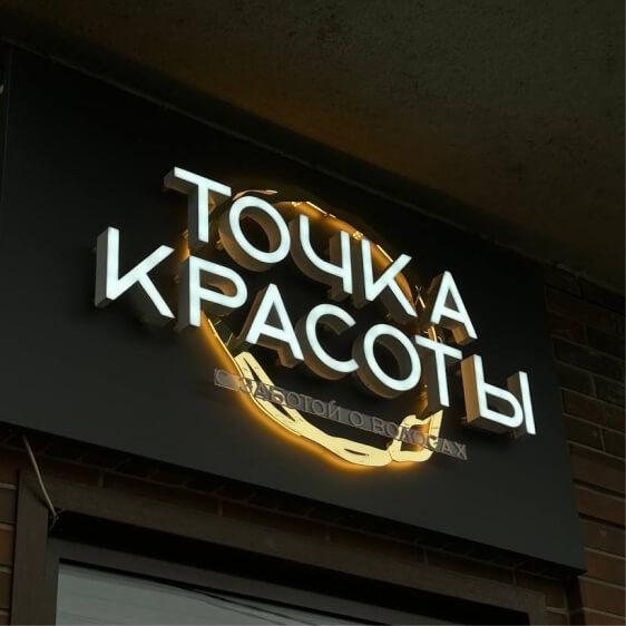 Являются классическим элементом почти любой вывески. Буквы можно установить на подложку, раму или прямо на стену. Часто используются материалы – пластик, оргстекло и металл.
